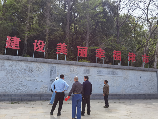 二、在賀龍廣場,黨員們瞻仰賀龍元帥銅像,通過石墻了解賀龍元帥在津市的革命事跡,深刻感悟老一輩革命家的家國情懷。